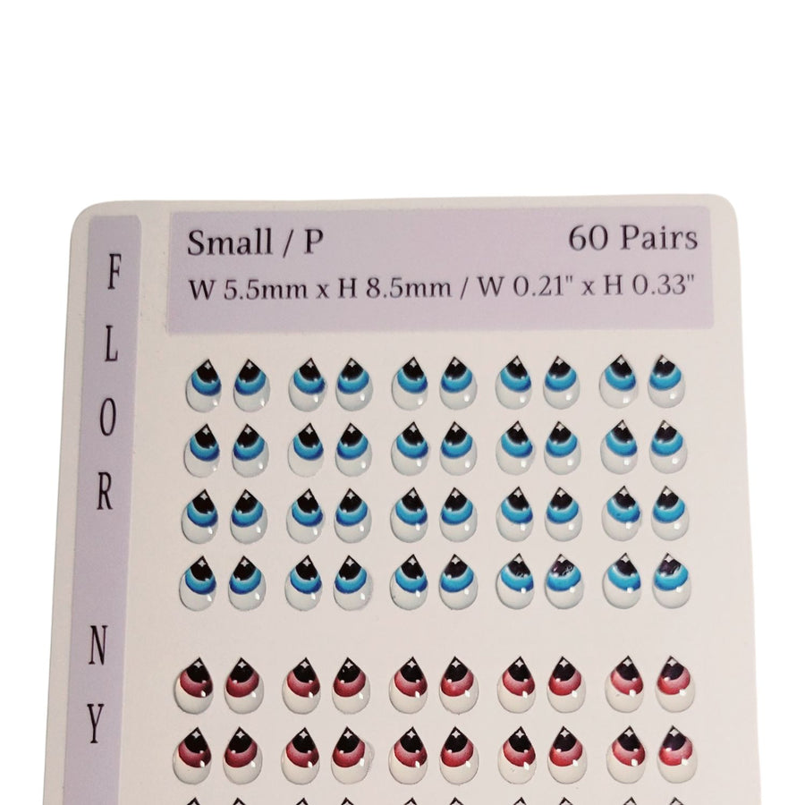 Adhesive Resin Eyes FNY 1004 - Small/P - 60 Pairs - W/H: 5.5x8.5mm (0.21" x 0.33") - for use with Cold Porcelain Air Dry Clay, Polymer Clay, EVA, Felt, Fabric, Plaster, Paper, Ceramic and more